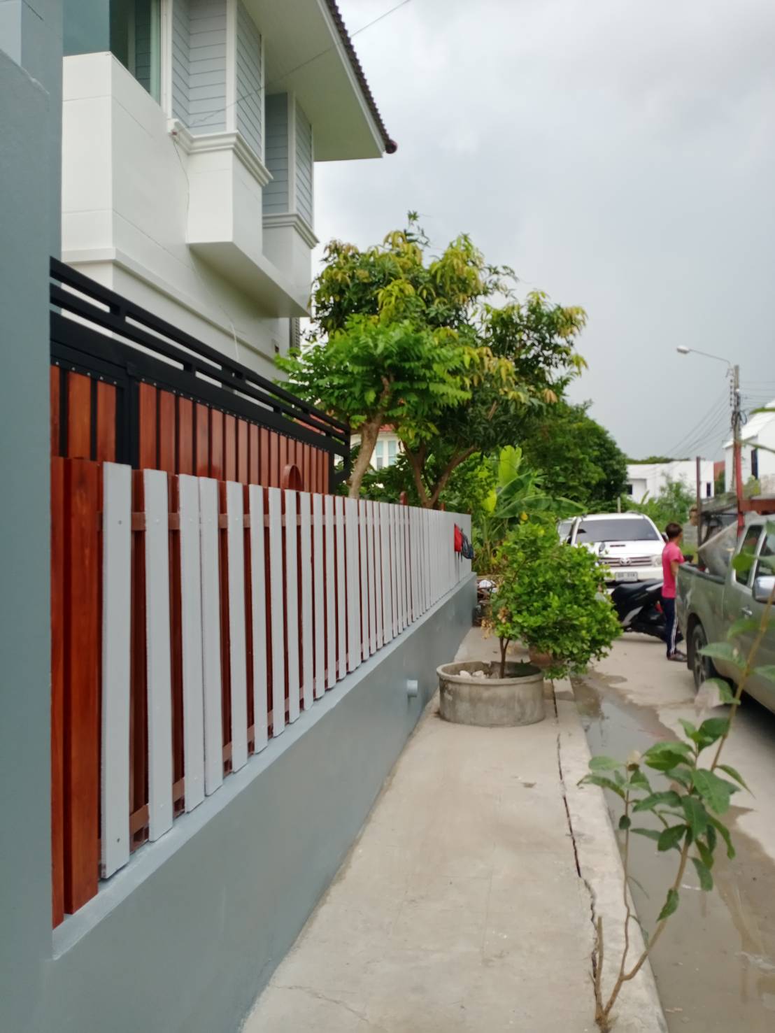 . ทำฐานกำแพงและใส่รั้วระแนง โปร่ง สูง150 เซนติเมตร