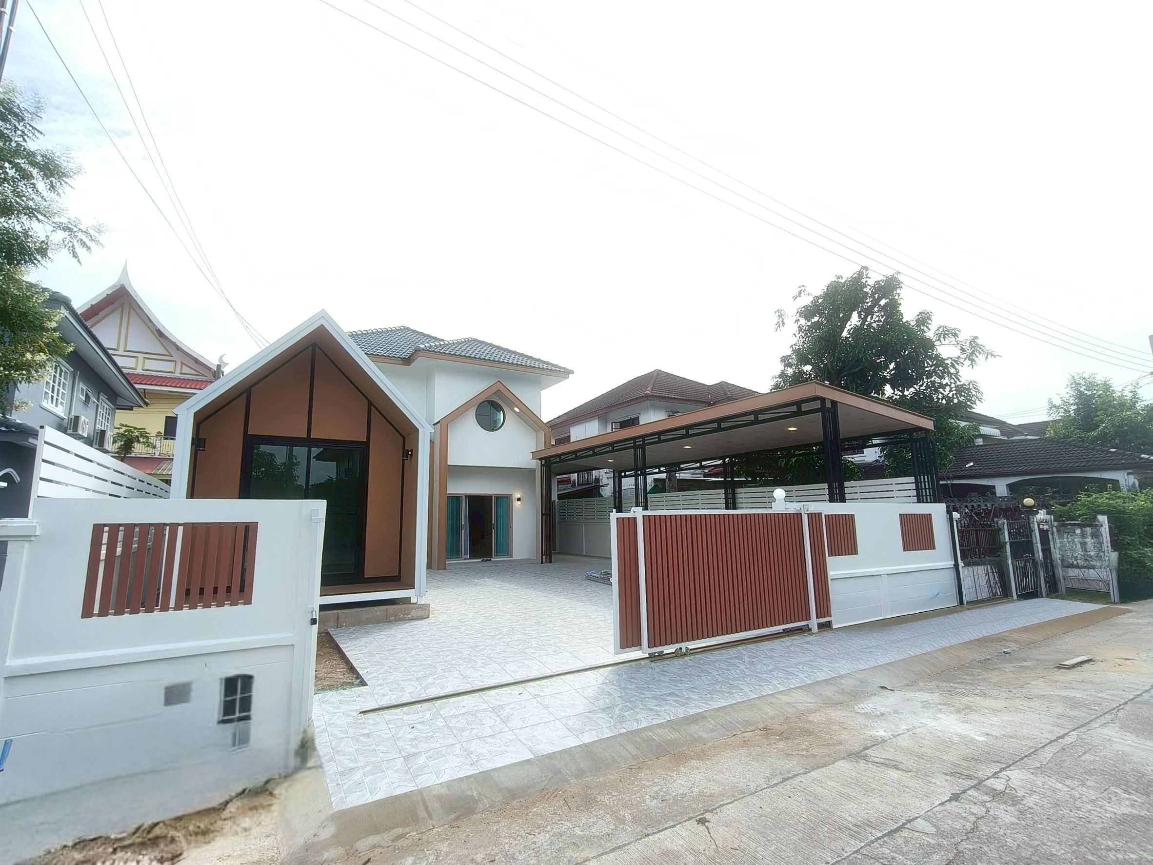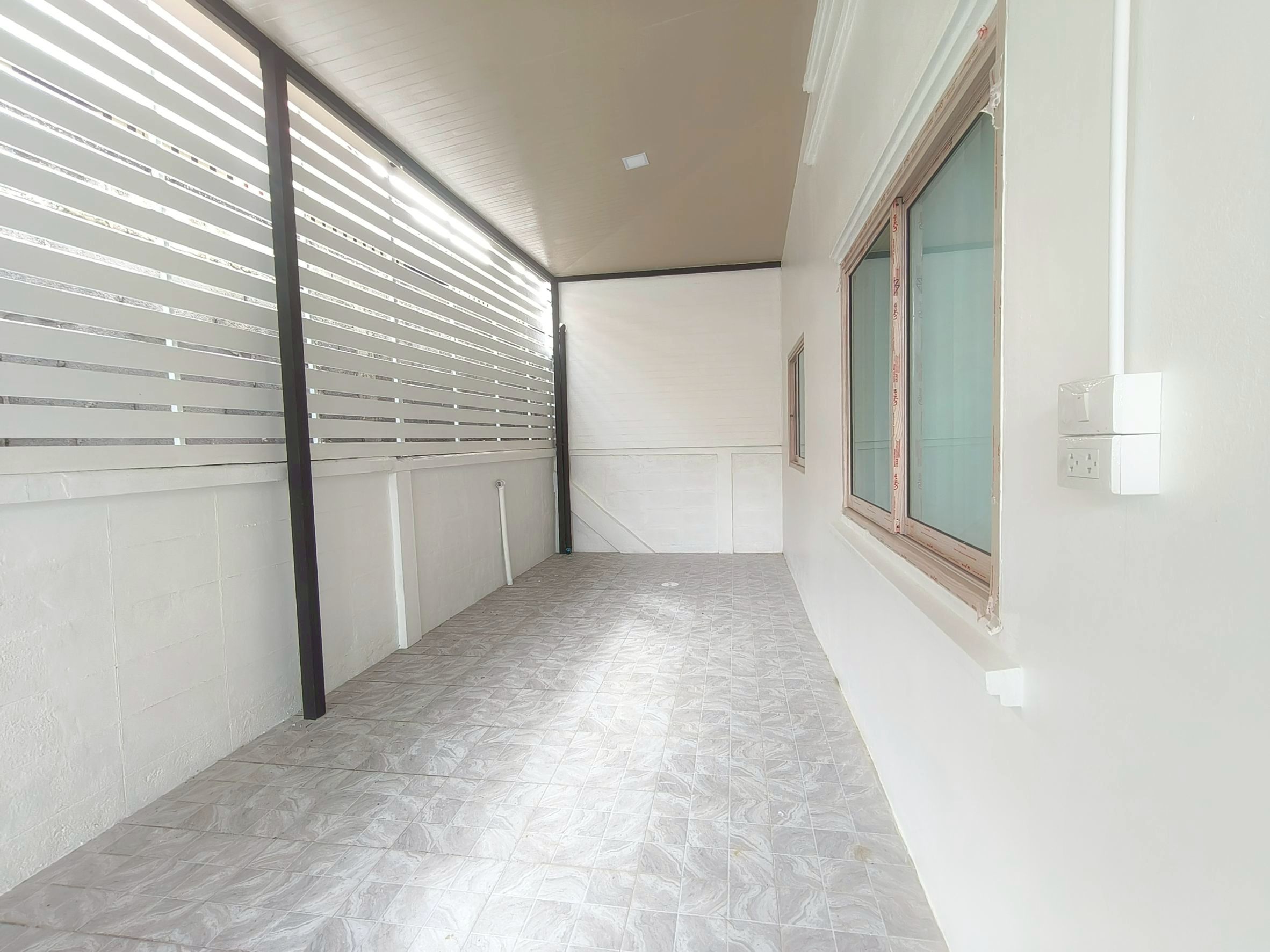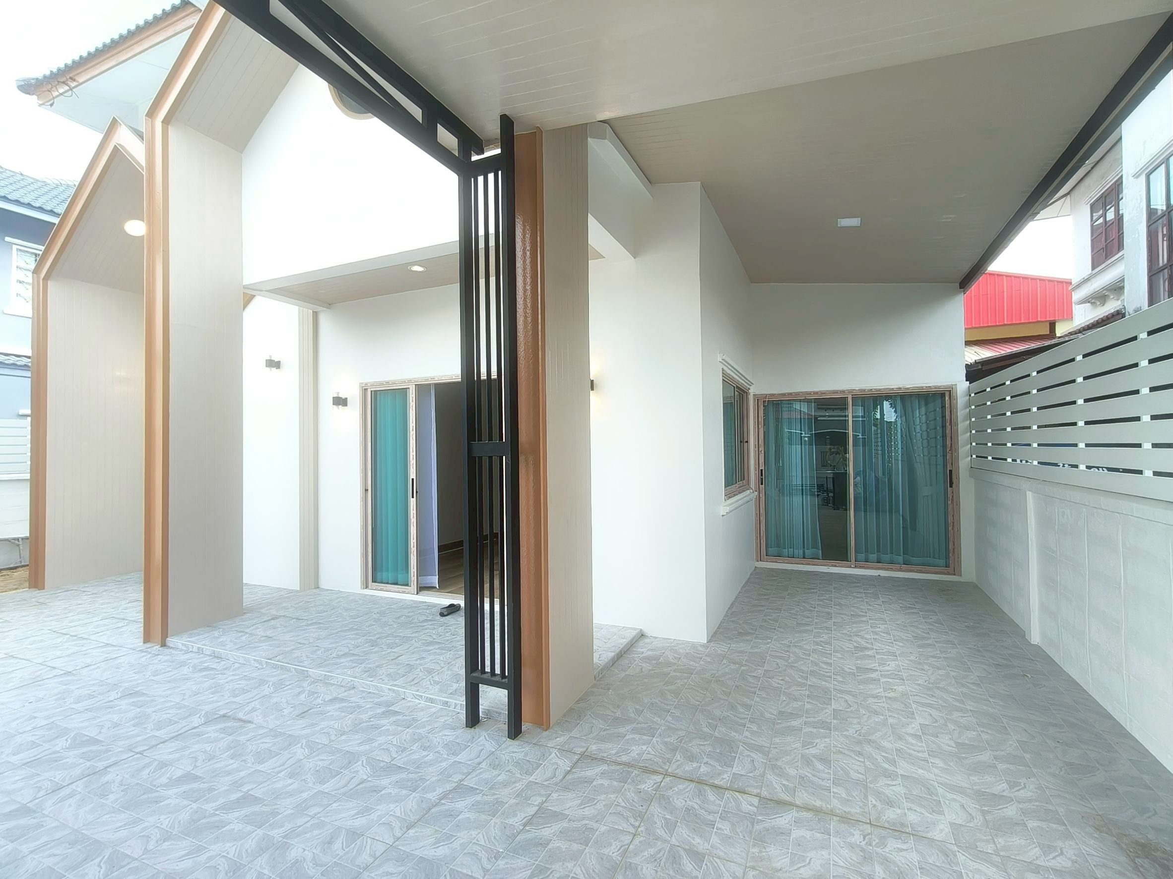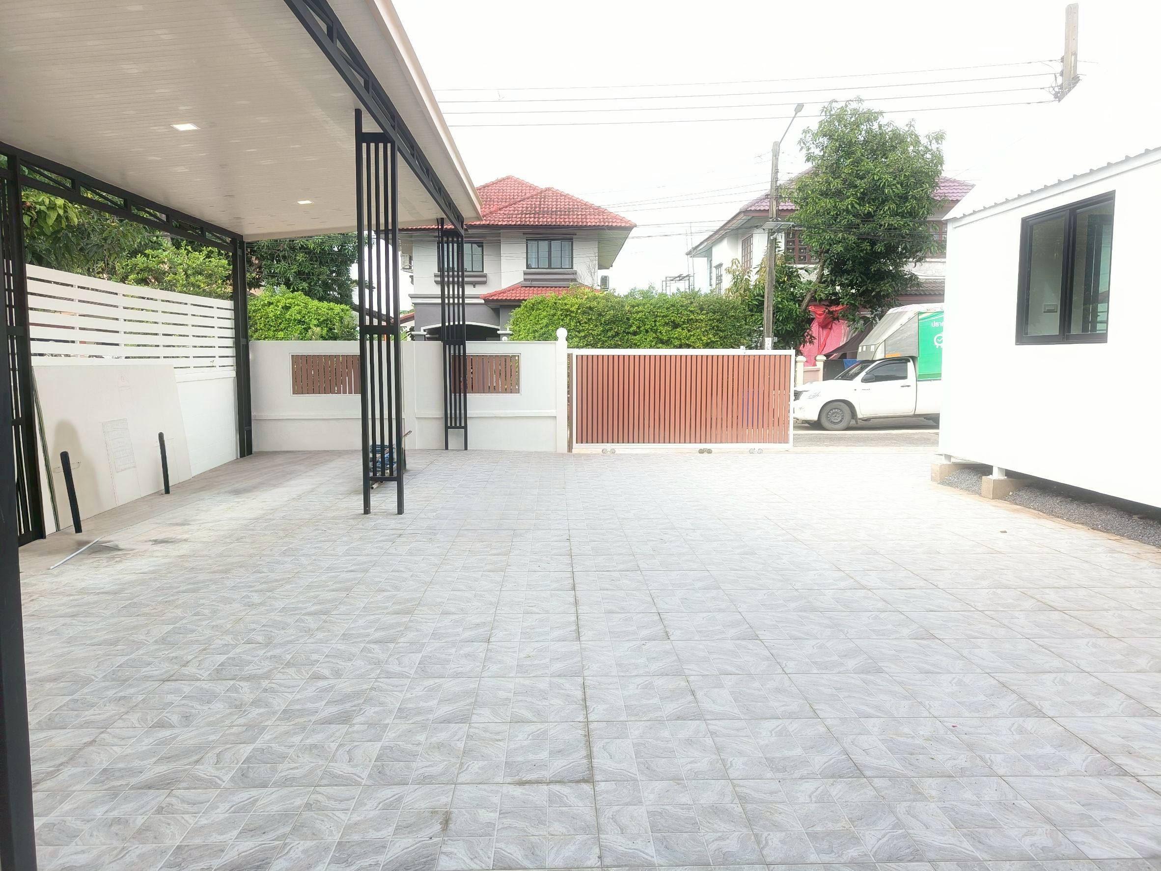 ต่อเติมหลังคาโรงจอดรถด้านหน้า ตีฝ้ากันความร้อนสวยงาม