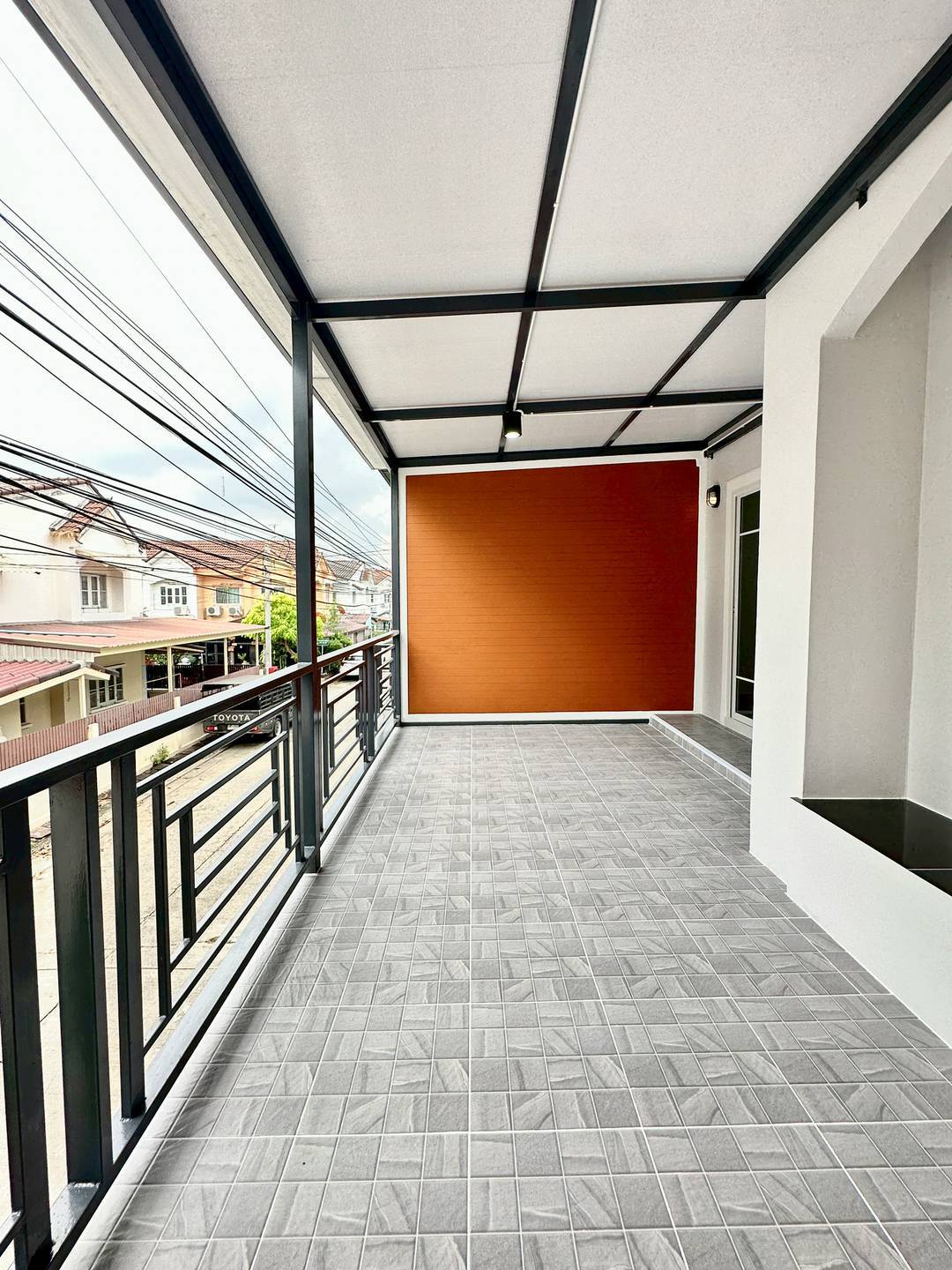 ✅หน้าบ้านกว้าง 6 เมตรจอดรถได้1คัน และมีบริเวณหน้าบ้านนั่งเล่น