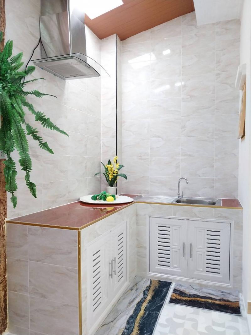– พื้นครัวปูกระเบื้องเต็ม ก่อเคาท์เตอร์ครัว พร้อมซิงค์ล้างจาน
