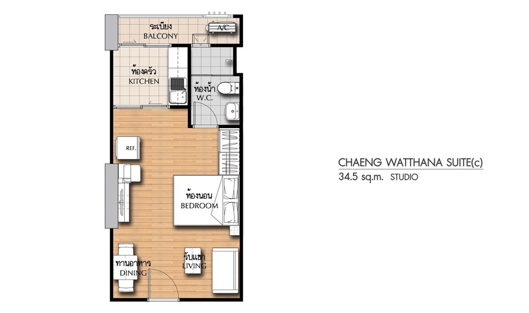 -ชั้น 22 (ห้องStudio) โครงการมี 24 ชั้น พื้นที่ใช้สอย 34.44 ตรม.