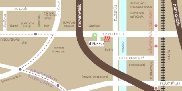 - ห่างจากจุดขึ้นลงทางด่วนศรีรัศม์ 900 เมตร