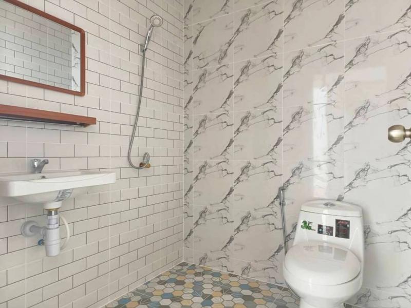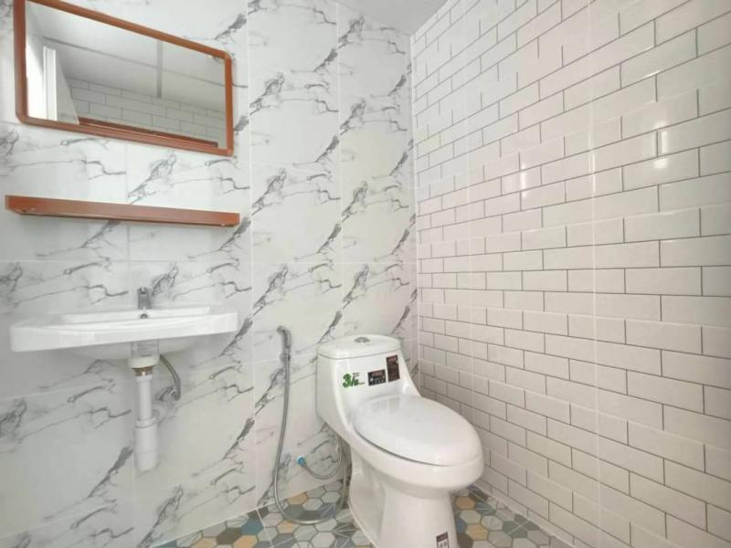 การตกแต่ง ชั้นล่างปูพื้นด้วยแกรนิตโต้ ชั้นบนปูพื้นด้วยแกรนิตโต้ ต่อเติมเคาท์เตอร์ครัวหลังบ้าน เปลี่ยนสุขภัณฑ์ไฟใหม่ทุกอย่างครบ