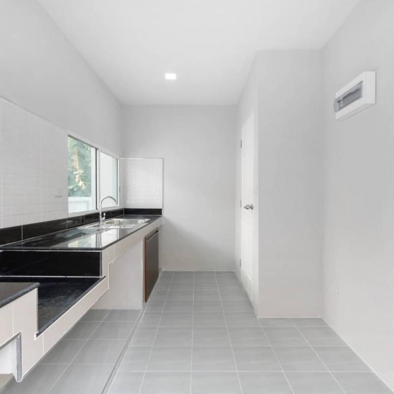 -2 ห้องน้ำ 2 จอด ต่อเติมแล้วทั้งโรงจอดรถและห้องครัว มีพื้นที่ใช้สอยรอบตัวบ้าน