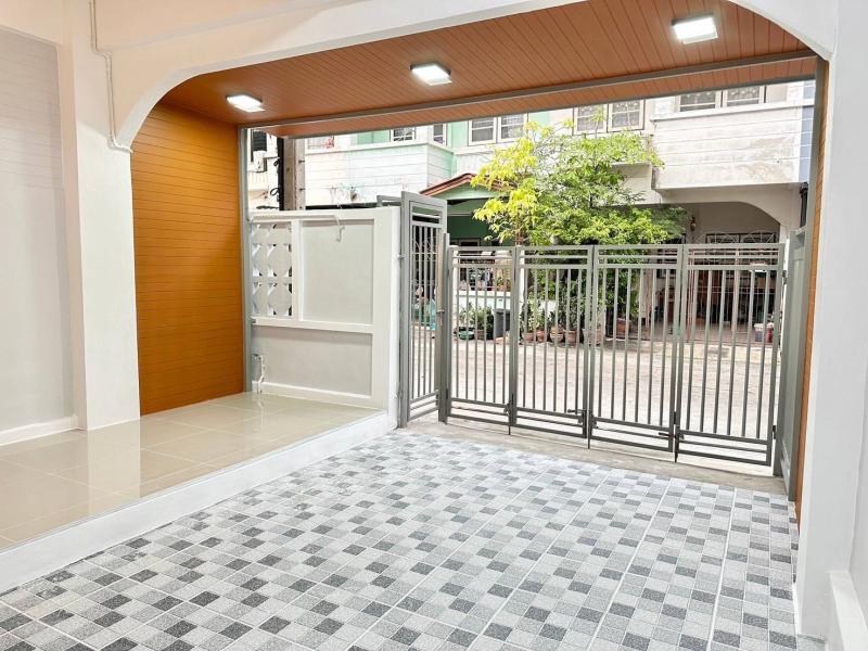 ประตูเข้าบ้านเข้าได้2จุดประตูบานเล็กสามารถเดินเข้าบ้านได้และประตูบ้านใหญ่สามารถนำรถจอดเข้าบ้านได้